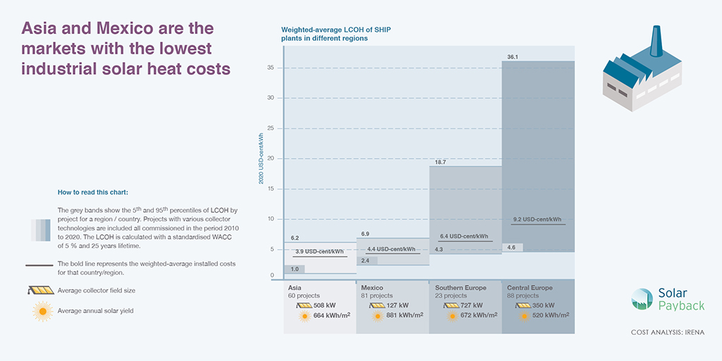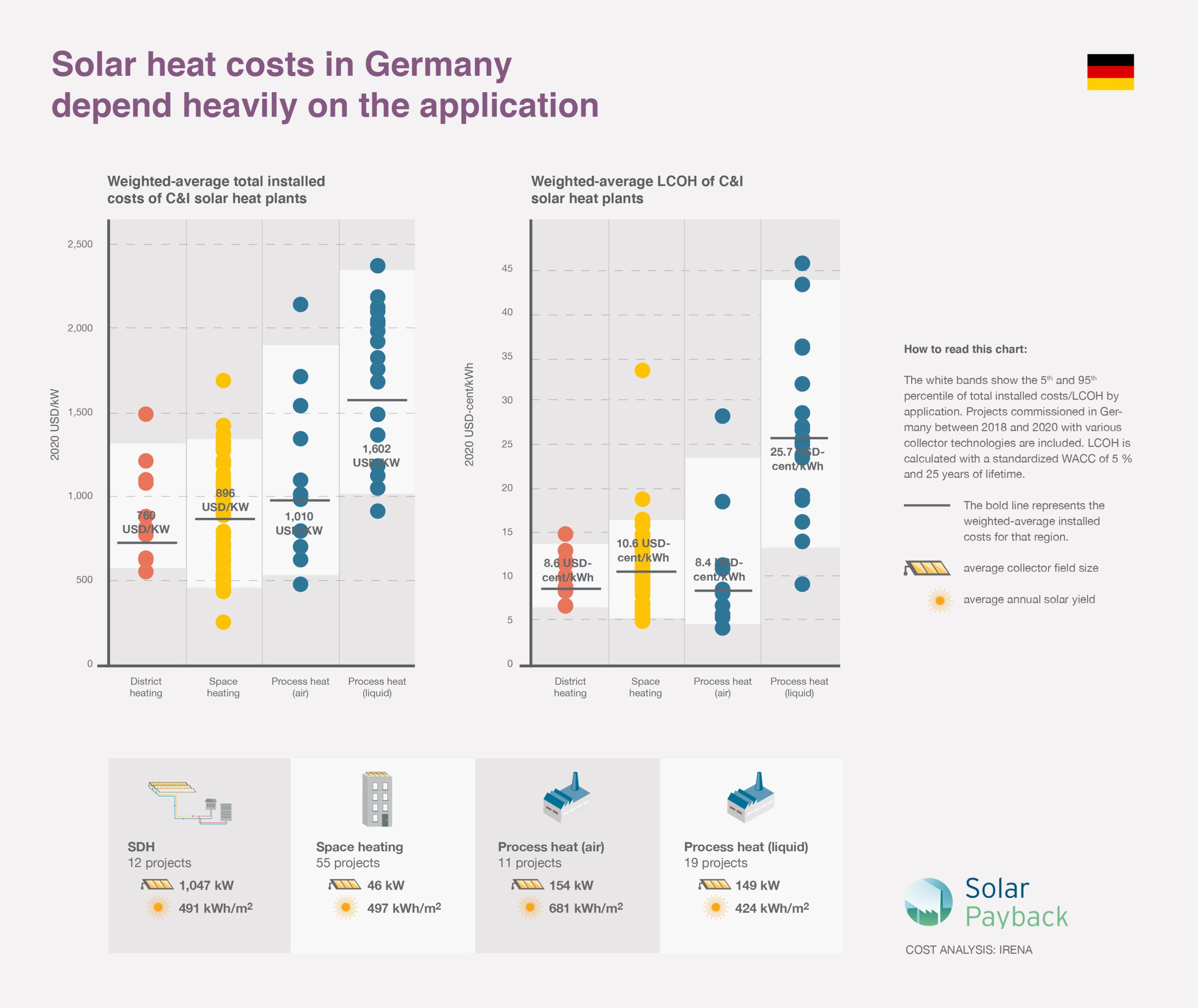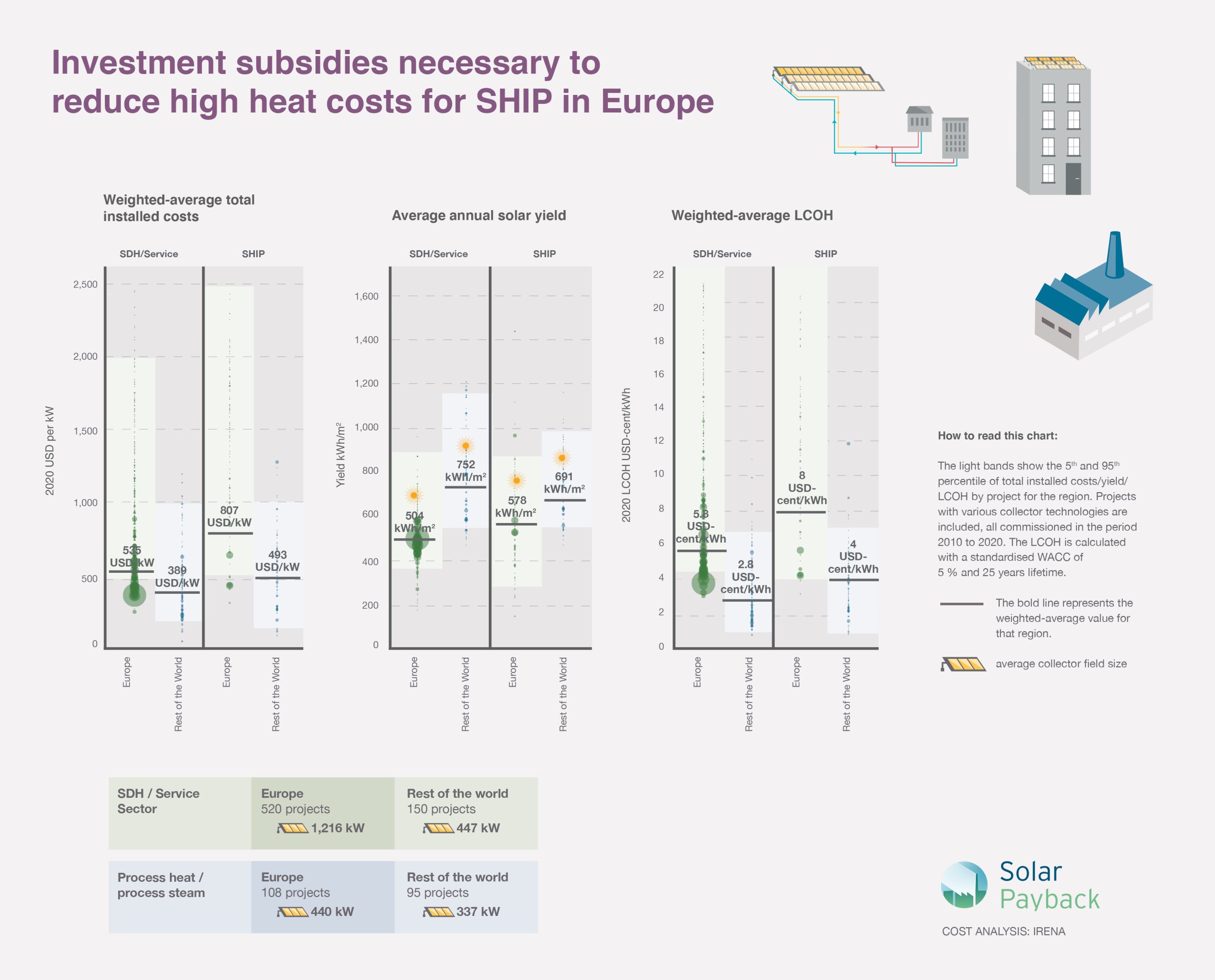 Planning to hold a presentation on solar hat applications in your country? Thinking about posting news articles to your website? Use the solar heat cost charts available for download here and reference @Solar Payback/IRENA 2022.
