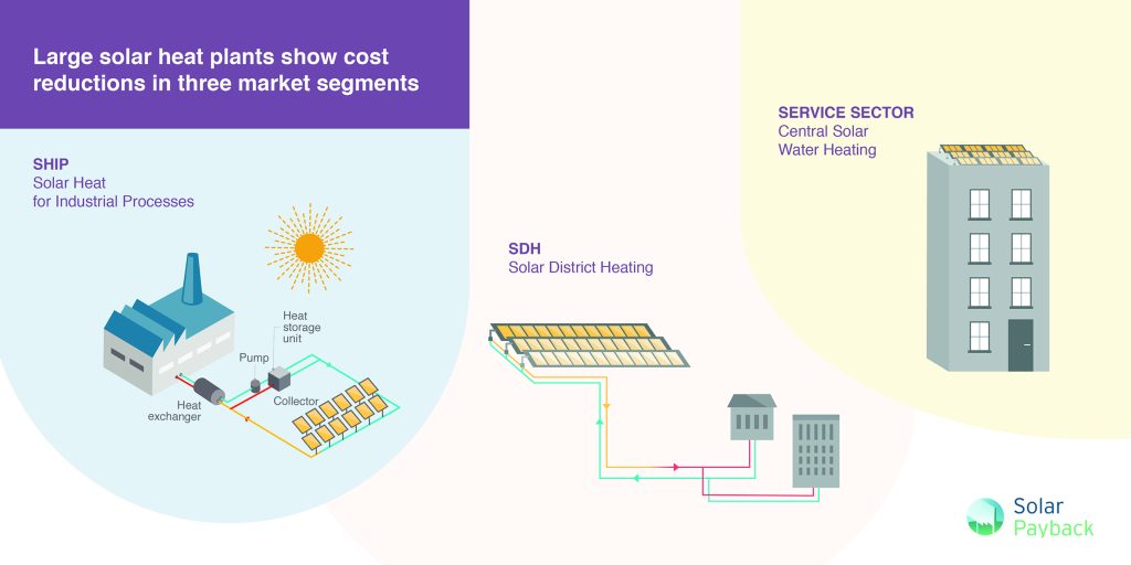 In the category of large solar heat plants, there are three main types of clients: industries with a high energy demand for heat (SHIP), utilities running district heating networks (SDH) and buildings from the service sector (hospitals, hotels, sport centres, multi-family houses etc.).